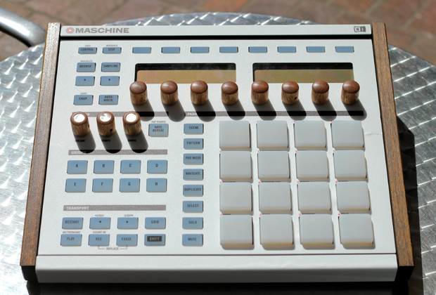 In conclusion, this Native Instruments Maschine customization project turned out to be pretty extensive. I changed out the thin standard pads for nice thick pads. I added pad corks for the much needed sensitivity upgrade. The dull black finish received a facelift with a nice white faceplate skin. Wood side panels were added for a bit of nostalgia and the addition of the wood side panel’s elevation provided a really nice ergonomic touch. Finally the contrasting wood knobs blew this one out of the water. This Native Instruments Maschine is truly next level.