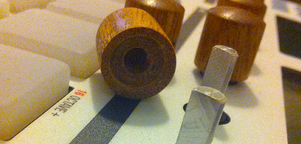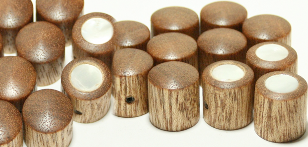 Although I found a good number of knobs I would have loved to purchase for the Maschine project I wasn’t sure if the shop would be willing to make and odd number of knobs. I needed 11 knobs and the more I browsed the more I took a liking to the idea of using 8 standard wood knobs for the pots beneath the two Maschine screens while using 3 wood knobs with white pearl inlays for the tempo, volume and swing pots. I thought the white pearl inlays would pick up the white faceplate skins nicely.