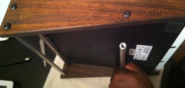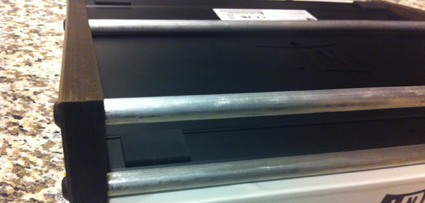 Initially I was a bit perplexed as to how the wood side panels would attach to the frame of the Maschine. I assumed that the three metal rods would some how go through the frame of the Maschine. At closer look, I realized that the wood side panels are actually meant to fit directly onto the existing indent in the Maschine’s plastic side panels. The metal rods would then be attached to the wood side panels beneath the Maschine.