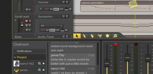 - Chat, listen, record, and edit simultaneously with others within a same project.