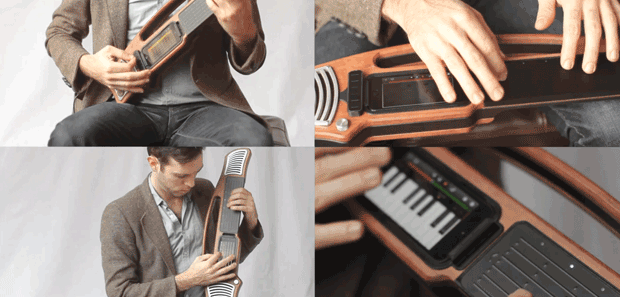 The INSTRUMENT 1 is, according to Artiphon, “a dramatically different musical controller for iOS. It combines traditional instrument craftsmanship with the power of the iPhone and musical apps.” It is undoubtedly the most slick and sleek piece of craftsmanship I’ve seen in a while. But perhaps even more impressive is the amount of tactile control it allows over iOS instrument apps like Garageband.